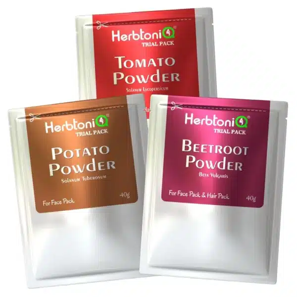 Be the first to review “HerbtoniQ Glowing Skin Trio Combo Pack of Tomato, Potato & Beetroot Powder – Natural Face Pack Powders for Tan Removal and Brightening Mask – 40g x 3” Cancel reply