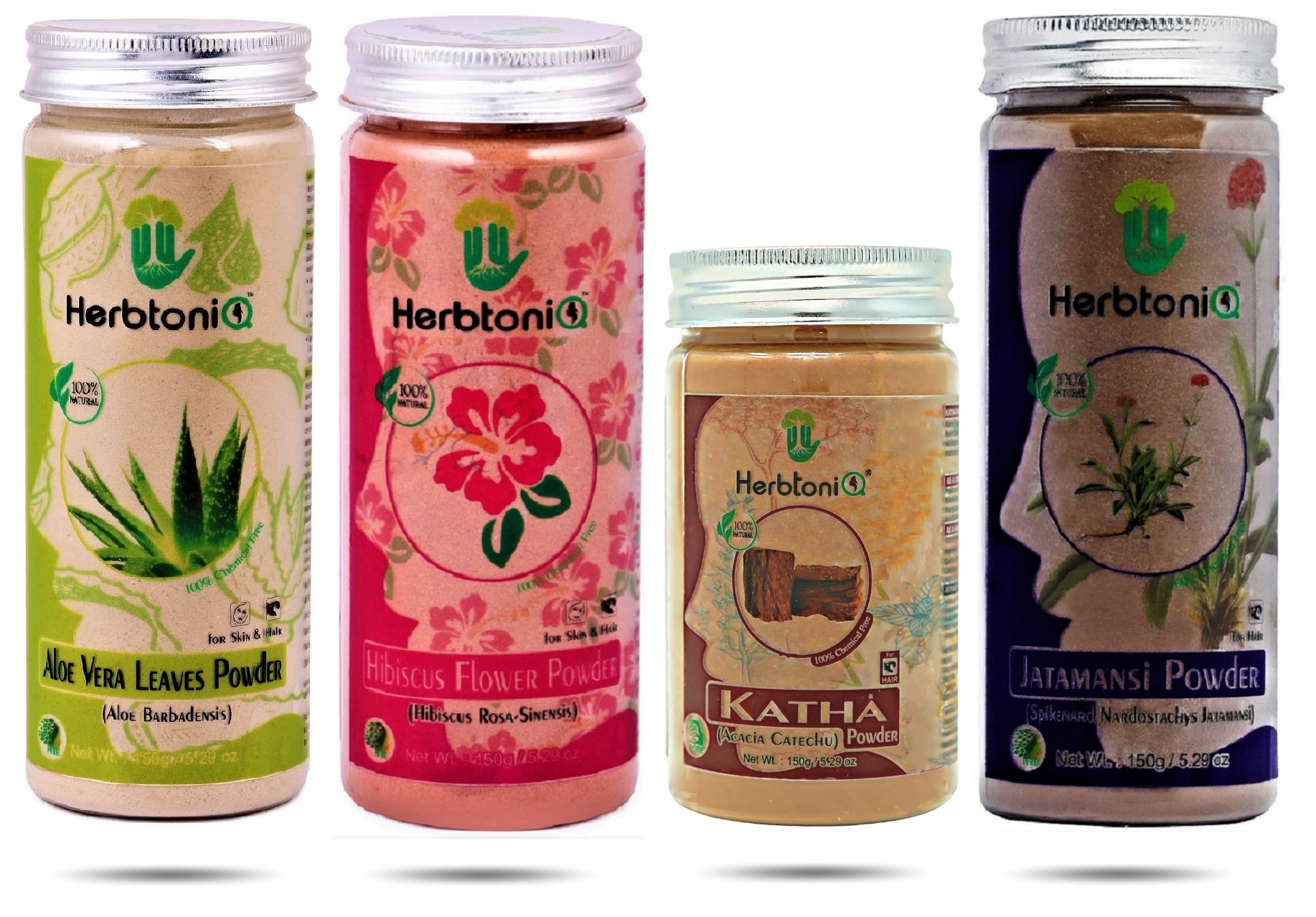 HerbtoniQ 100% Natural Aloevera, Hibiscus, Katha and Jatamansi Powder for Dandruff, Frizzy Hair, Damaged Hair, Intensive Hair Care Pack (600 Gram)
