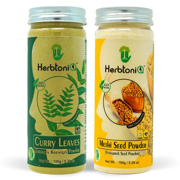 HerbtoniQ Curry Leaves Powder is rich in antioxidants that moisturize the scalp while getting rid of dead hair follicles. They are a good source of proteins and beta-carotene, both of which reduce hair loss and thinning.