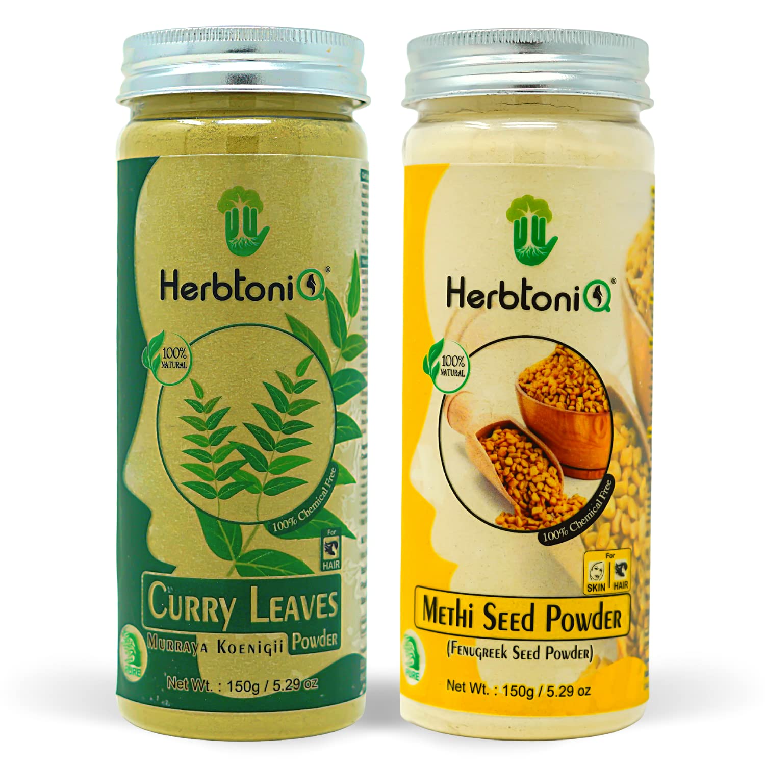 HerbtoniQ 100% Natural Curry Leaves and Methi Powder For Dandruff, Hair-Fall Hair Care regimens(300 Gram)