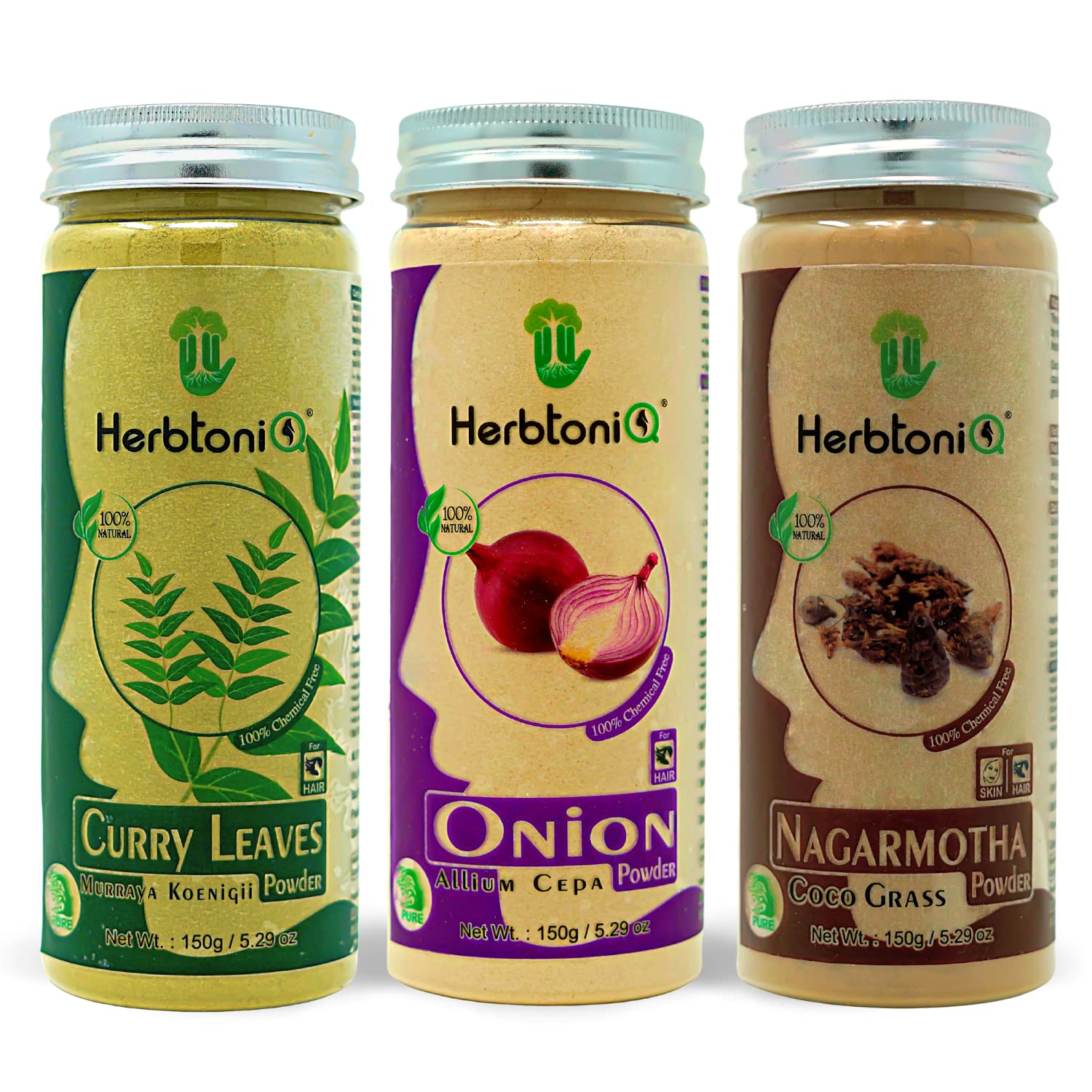HerbtoniQ Curry Leaves Powder is rich in antioxidants that moisturize the scalp while getting rid of dead hair follicles. They are a good source of proteins and beta-carotene, both of which help to Protect hair loss and thinning. This powder is also rich in amino Sour that helps strengthen follicles and keep them healthy. Hair follicles get clogged due to factors such as an oily scalp, pollution, and the build-up of products. AS HAIR OIL: Mix 3-4 teaspoons of curry leaves powder with 150 ml of coconut oil and heat the mixture. Wait for a while and allow them to cool down. Filter the oil and store in an airtight container.