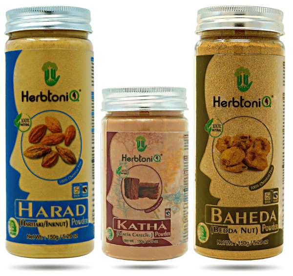 • ✔ NET CONTENT(Pack of 3) : – Harad 150gm, Katha 150gm, Baheda 150gm.