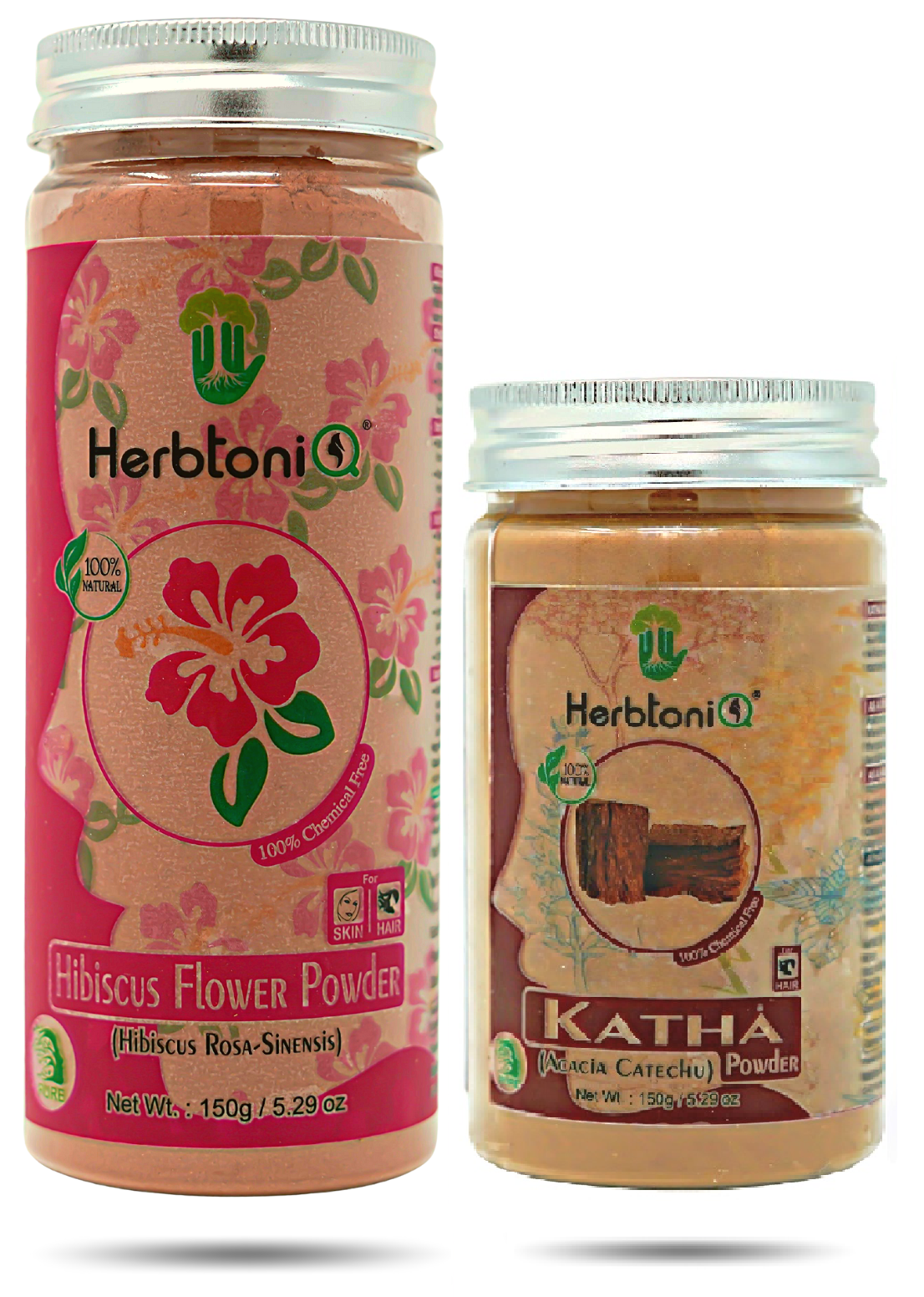 HerbtoniQ 100% Natural Hibiscus and Katha Powder for Making DIY Mask for Face/Facial, Hair & Body (300 Gram)