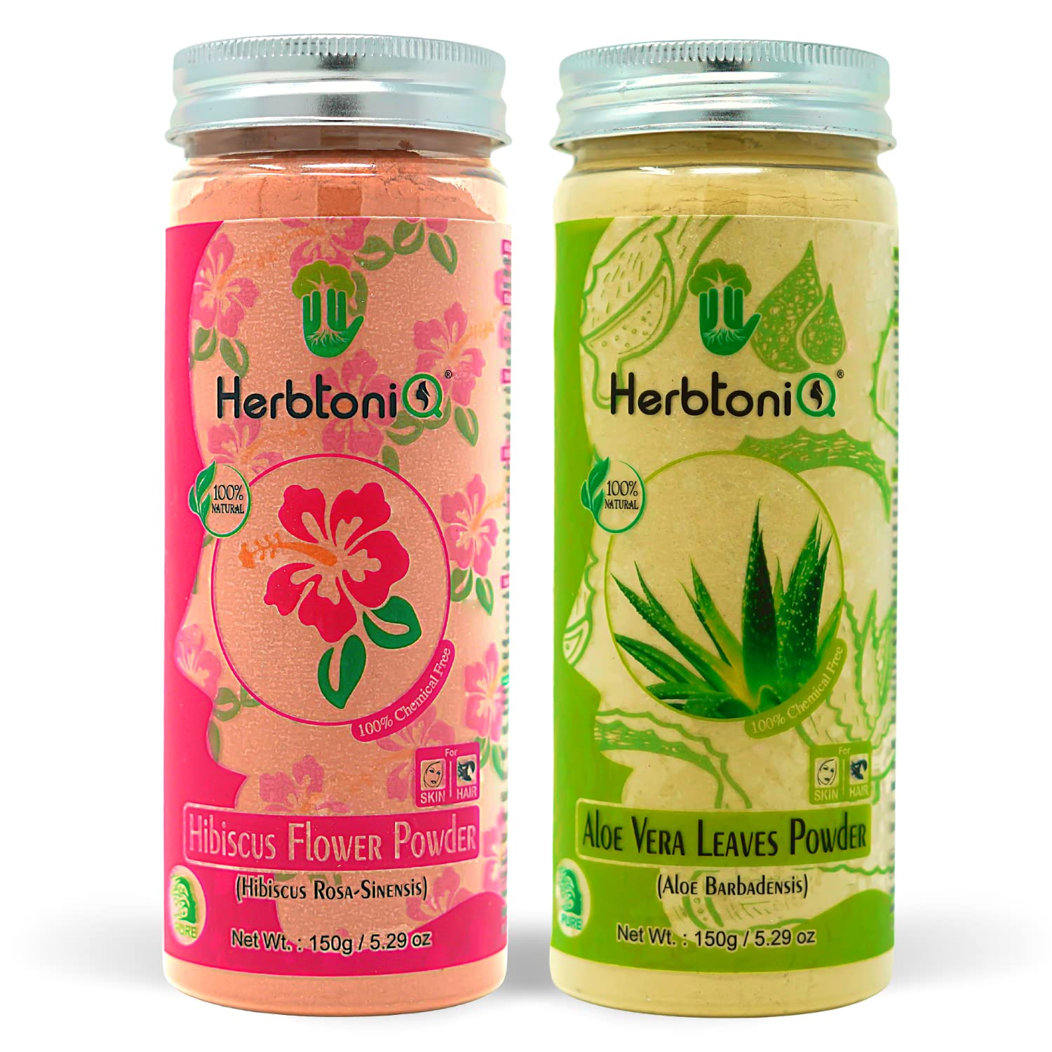HerbtoniQ 100% Natural Hibiscus Flower and Aloe Vera Leaves Powder For Face Pack (300 Gram)