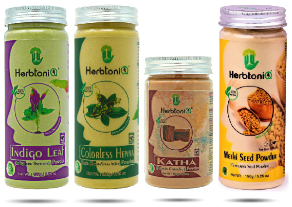HerbtoniQ 100% Natural Indigo Leaf, Colorless Neutral Henna, Katha and Methi Powder for Dandruff, Frizzy Hair, Damaged Hair, Intensive Hair Care Pack (600 Gram)