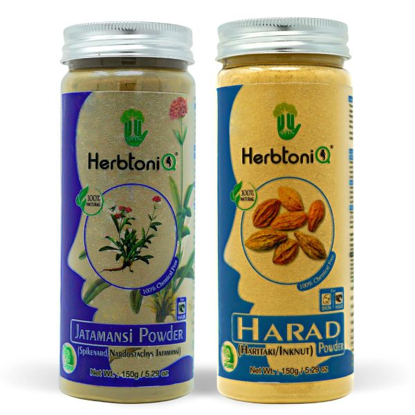 HerbtoniQ 100% Natural Jatamansi and Harad Powder for Dandruff, Frizzy Hair, Damaged Hair, Intensive Hair Care Pack (300 Gram)