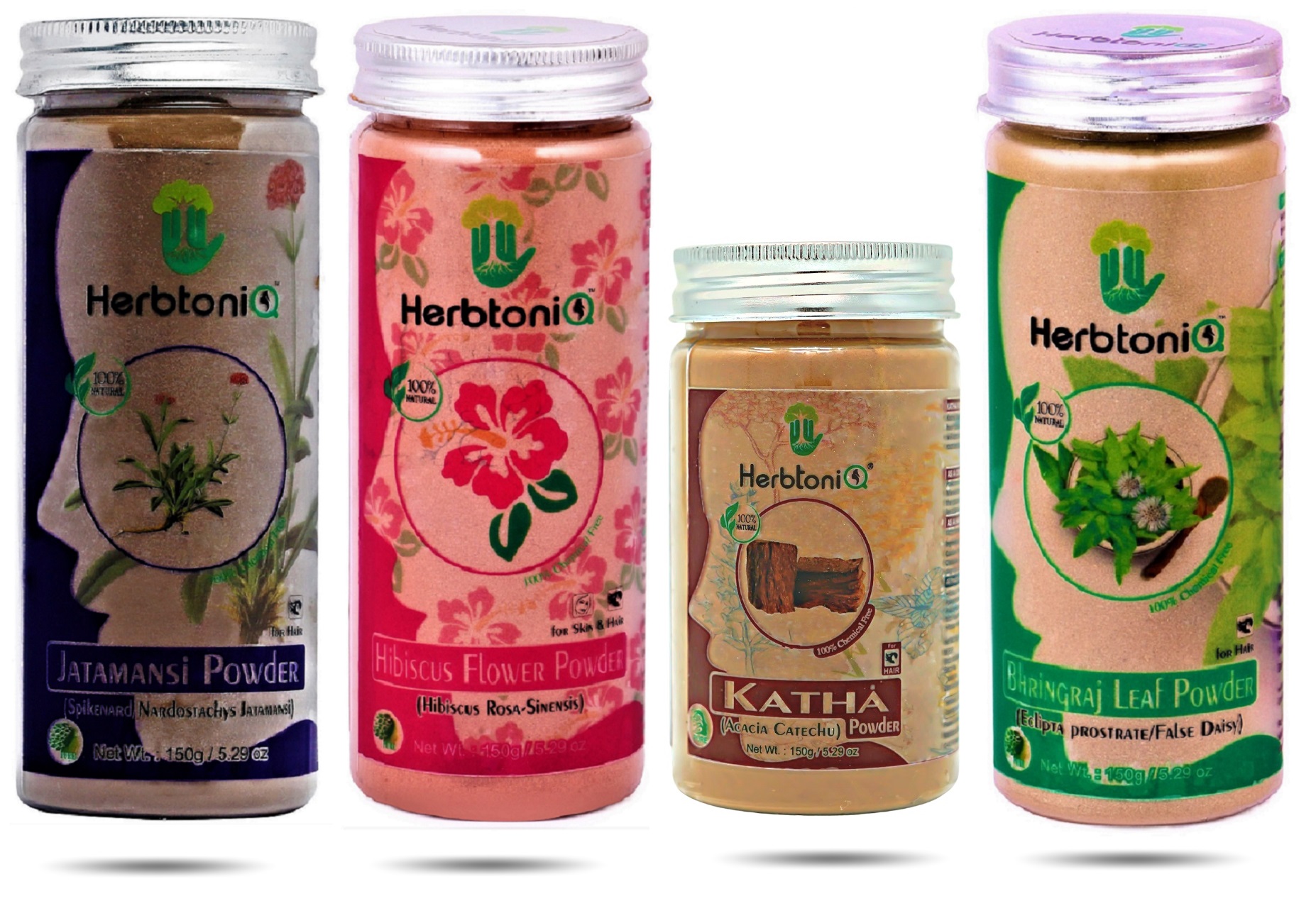 Mix Bhringraj Powder (1 tbsp.) with HerbtoniQ Amla Powder (1 tbsp.), neem powder (1 tbsp.) and some amount of Hibiscus Powder (½ tbsp.) with water make a paste and apply on hair and scalp for 30 minutes.
