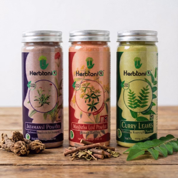 | DIY Herbal Hair Pack | Mix equal parts of Jatamansi, Manjistha, and Curry Leaves powder with water, curd, or aloe vera gel to form a smooth paste. Apply to scalp and hair, leave for 30–45 minutes, and rinse thoroughly. |