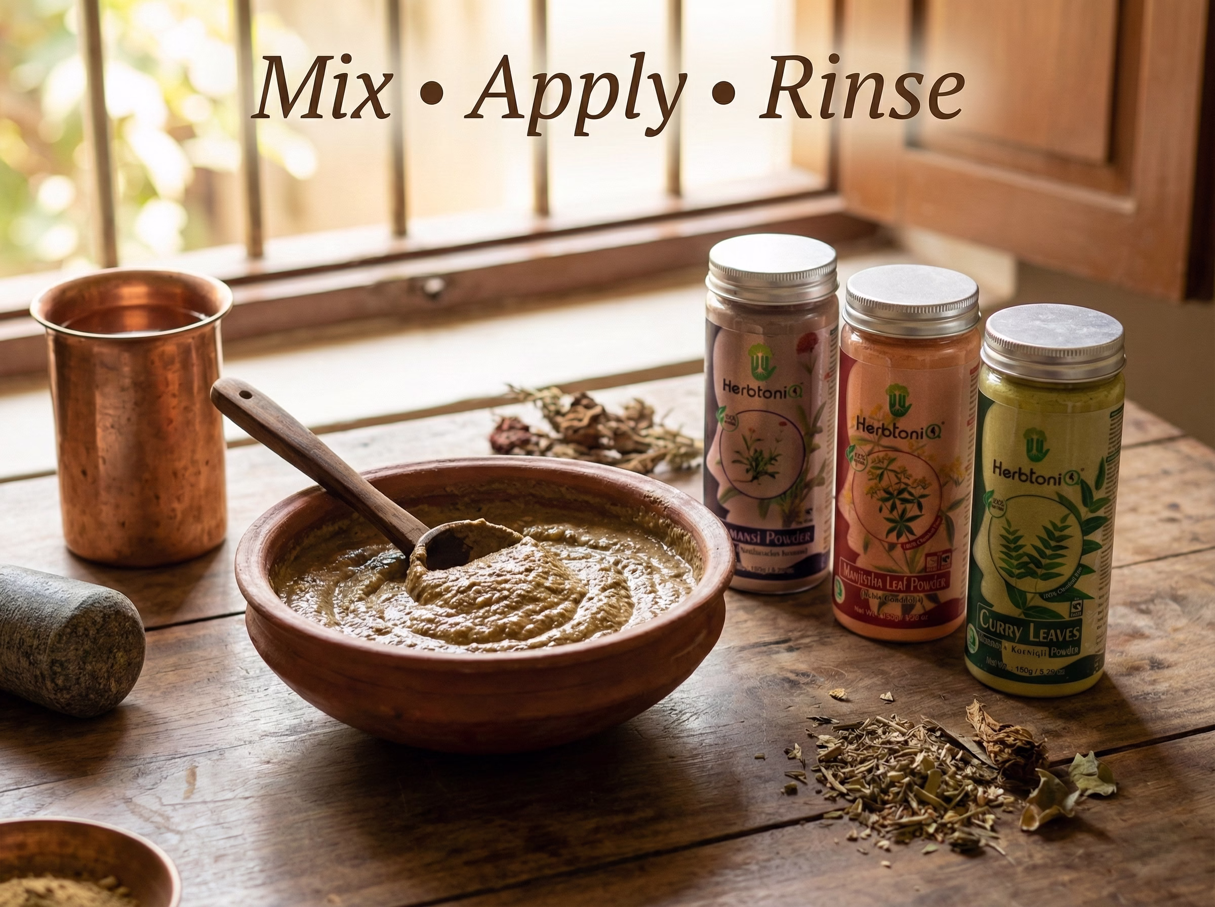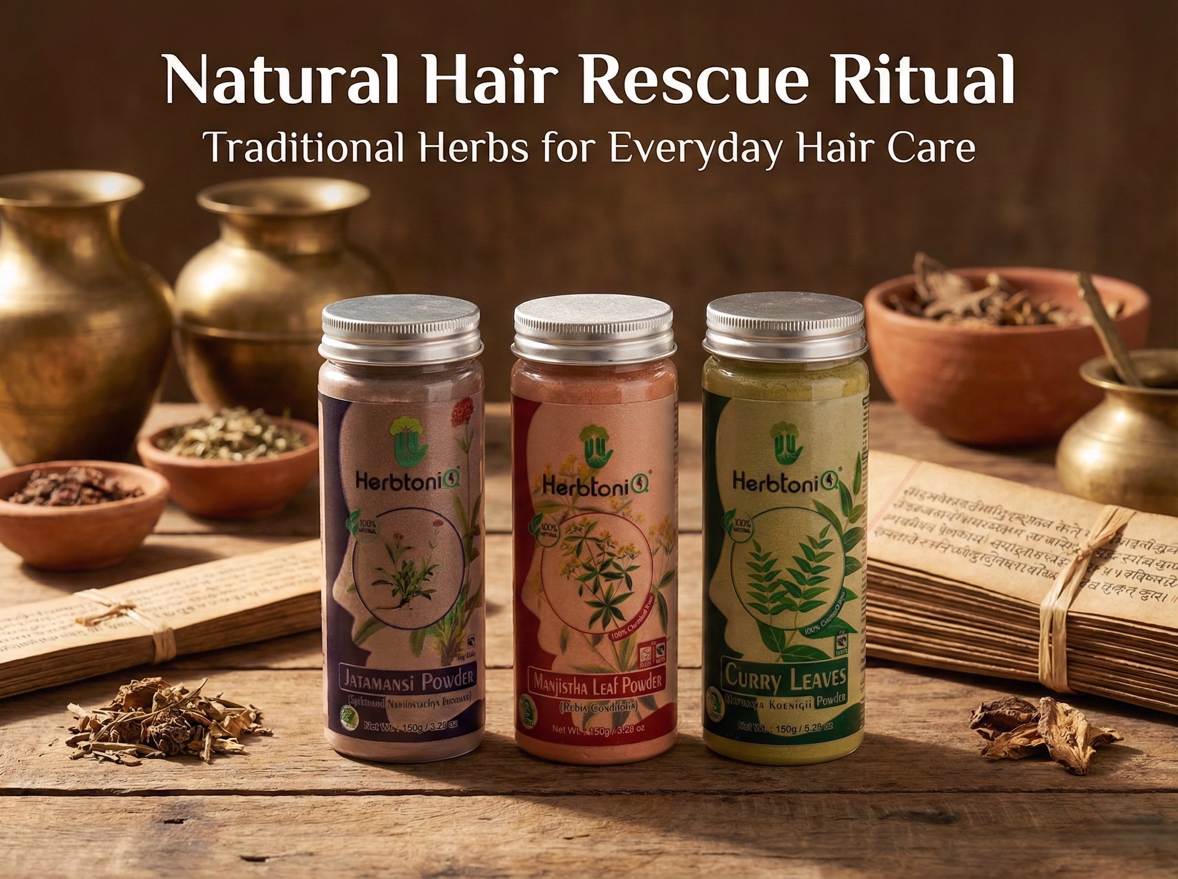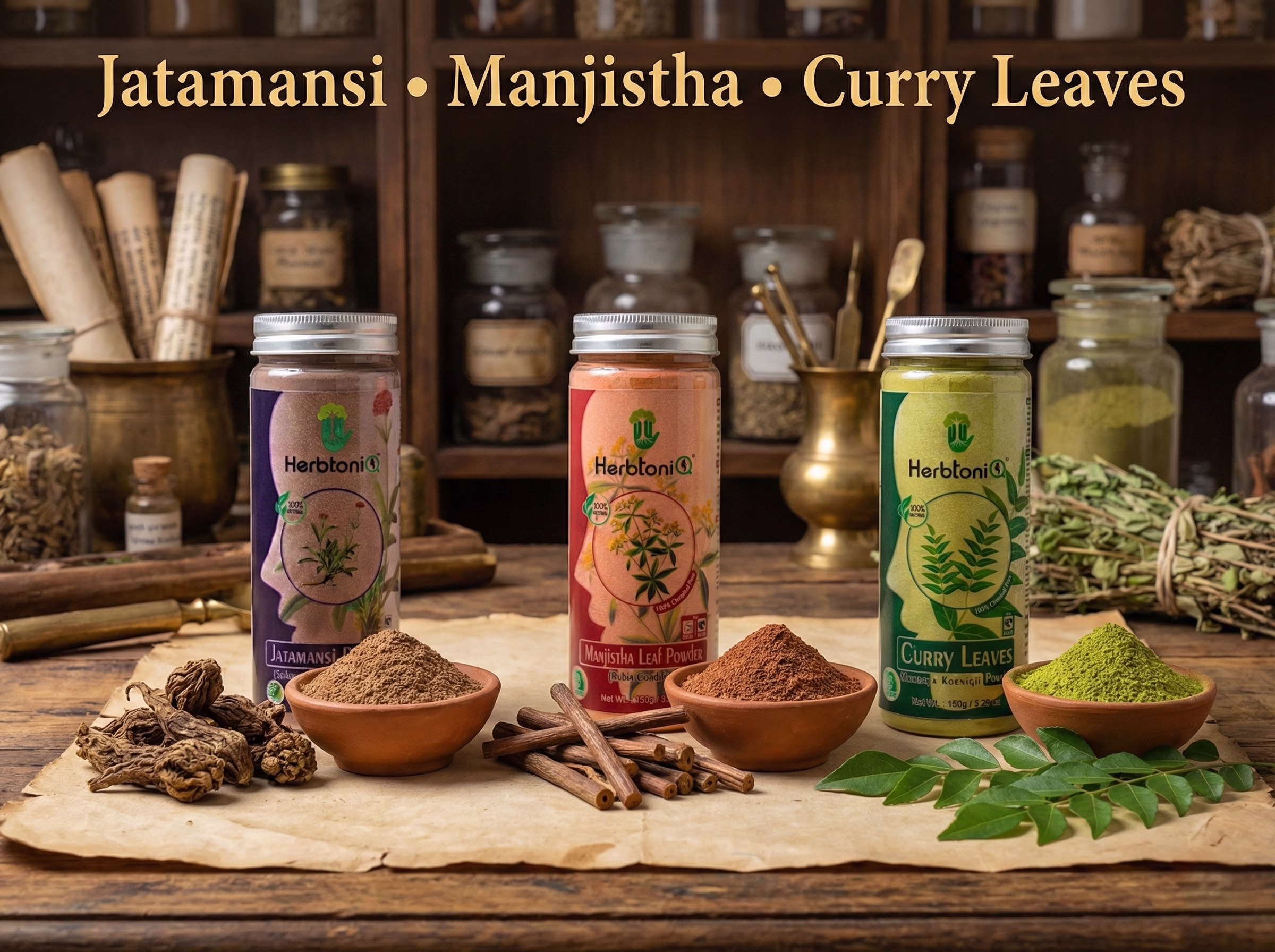 | DIY Herbal Hair Pack | Mix equal parts of Jatamansi, Manjistha, and Curry Leaves powder with water, curd, or aloe vera gel to form a smooth paste. Apply to scalp and hair, leave for 30–45 minutes, and rinse thoroughly. |