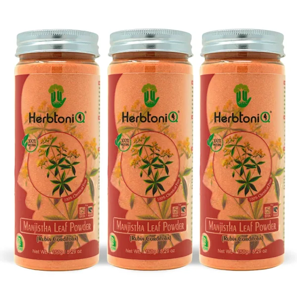 HerbtoniQ 100% Natural Manjistha Leaf Powder (Rubia Cordifolia) For Face Pack And Hair Pack 150g (Pack of 3)