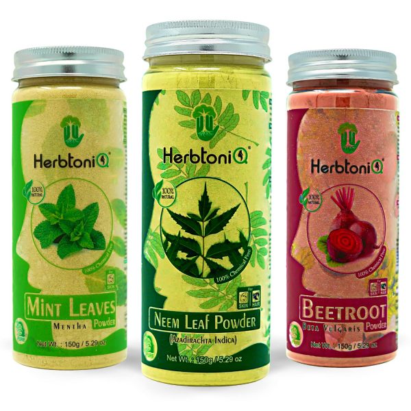 HerbtoniQ 100% Natural Mint Leaves Powder, Neem Leaf Powder & Beetroot Powder For Face Pack And Hair Pack (3 Pieces, 450g)