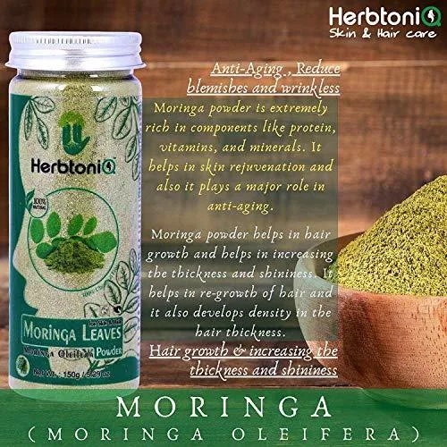 - ✔HerbtoniQ Moringa powder is extremely rich in components like protein, vitamins, and minerals. It helps in skin rejuvenation and also it plays a major role in anti-aging. This moringa powder is held to condense blemishes and wrinkles which will, in turn, make you look younger.