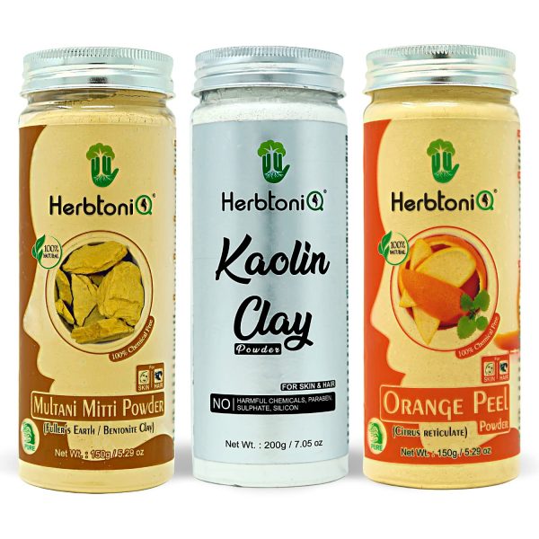 HerbtoniQ 100% Natural Multani Mitti, Kaolin Clay and Orange Peel Powder for Face Pack & Hair Pack (500g)
