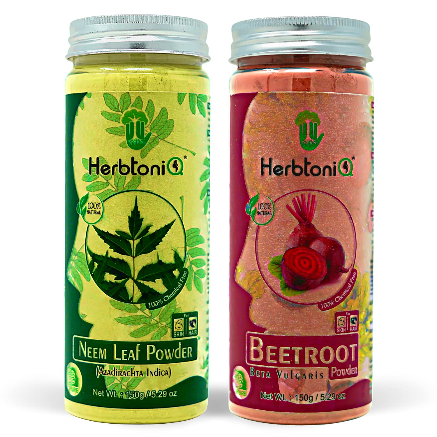 HerbtoniQ 100% Natural Neem Leaf Powder And Beetroot Powder For Face Pack And Hair Pack (300g)