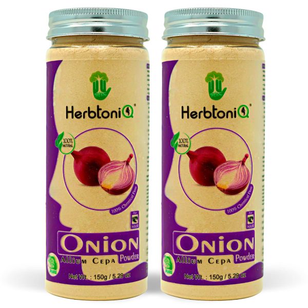 HerbtoniQ Onion powder is known to be a sure-shot method for hair care. It has antiseptic and antibacterial properties. It also helps fight hair lice, dandruff and can be used as a natural hair nourisher and conditioner.