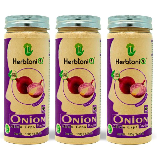 HerbtoniQ Onion powder is known to be a sure-shot method for hair care. It has antiseptic and antibacterial properties. It also helps fight hair lice, dandruff and can be used as a natural hair nourisher and conditioner.