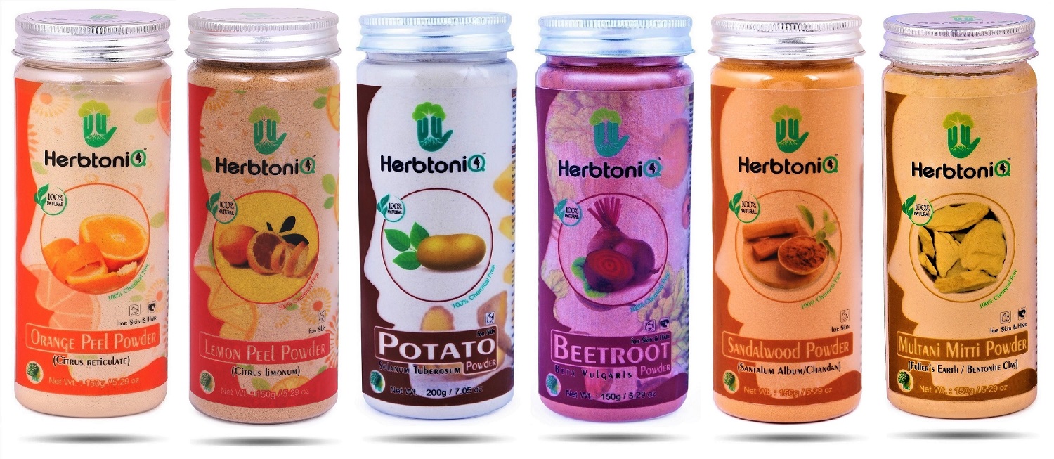 HerbtoniQ 100% Natural Pack of 6 Orange Peel, Lemon Peel, Potato, Beetroot, Sandalwood and Multani Mitti Powder For Face Pack(950 Gram)