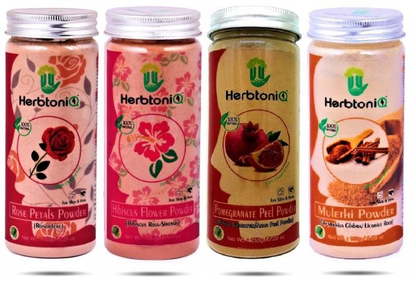 HerbtoniQ 100% Natural Rose Petals, Hibiscus, Pomegranate Peel and Mulethi Powder For Face Pack (600 Gram)