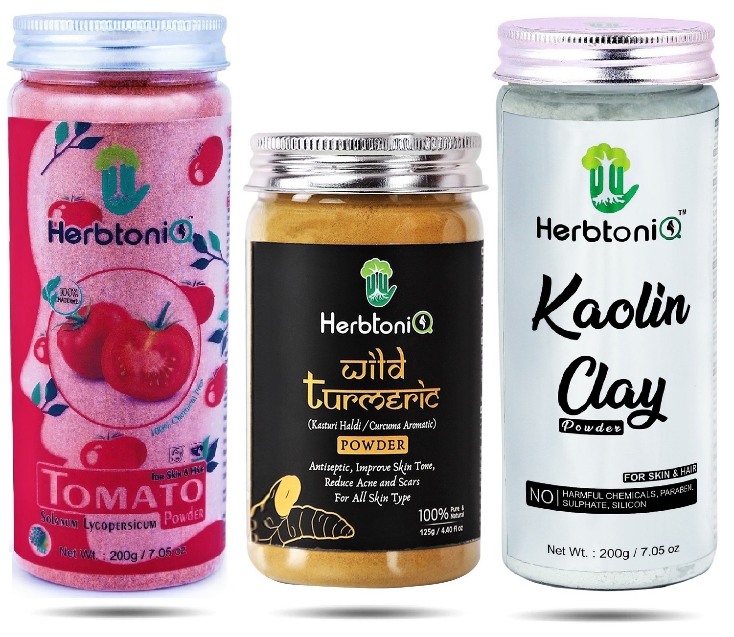 HerbtoniQ 100% Natural Tomato, Wild Turmeric and Kaolin Clay Powder For Face Pack(525 Gram)