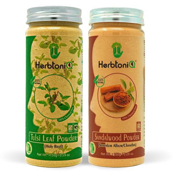 Tulsi Leaf Powder (Holy Basil) HerbtoniQ Tulsi (Basil) Leaf Powder contains essential oils such as eugenol, citronellol, limonene and terpineol that have effective antiseptic and antibacterial properties. The natural oils of this herb work as a natural cleanser to unclog pores and remove excess oil, dirt and impurities from the skin. The best benefits of basil leaves powder for skin is its potent anti-ageing property that helps in reversing the damage caused by free radicals and maintaining youthful and supple skin that emits a natural glow. Tulsi Leaf Powder works as an effective natural remedy for hair fall and dandruff as well.