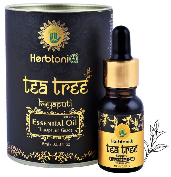 HerbtoniQ 100% Pure Tea Tree Essential Oil Undiluted Therapeutic Grade For Massage, Skin, Hair & Acne Care (15 ml)