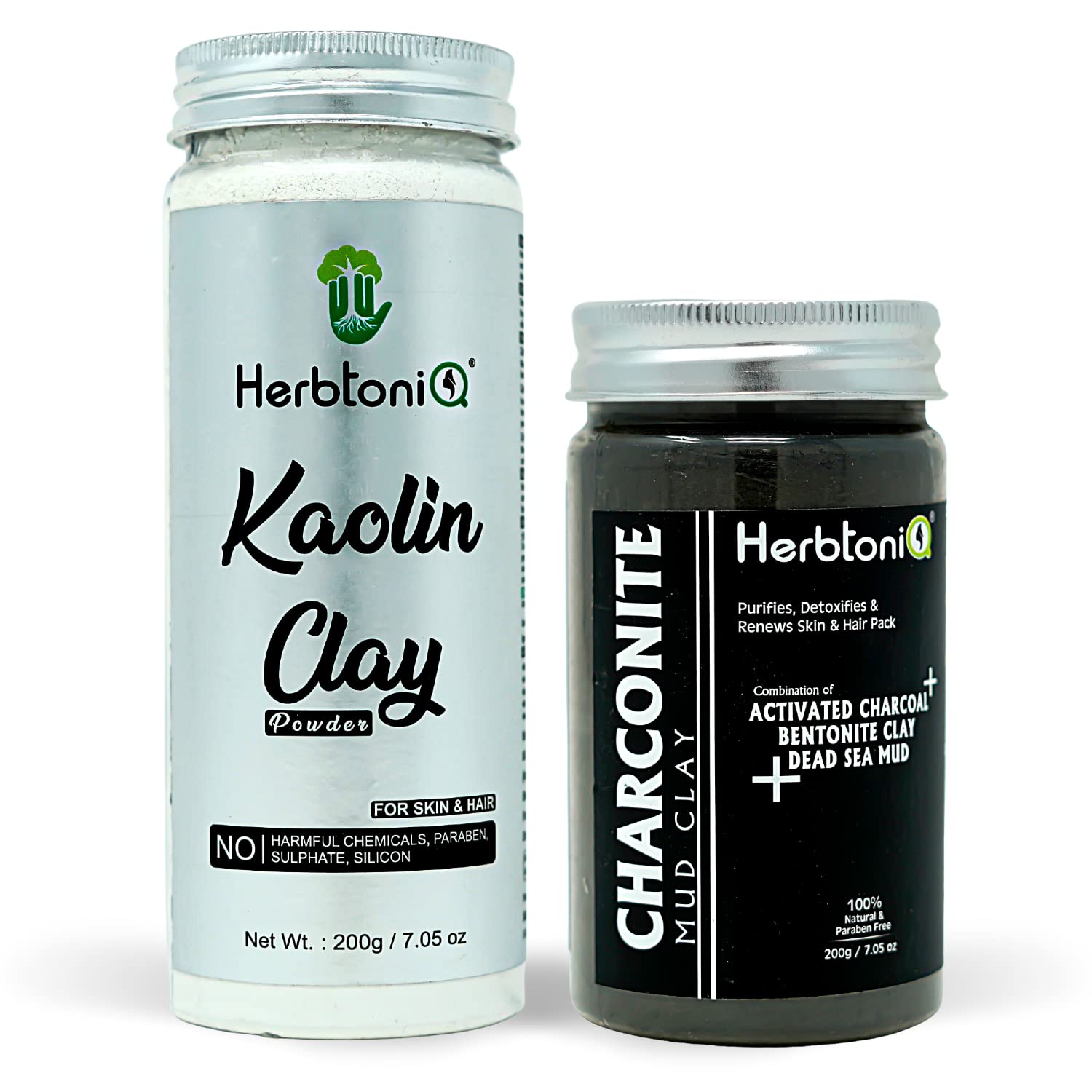 HerbtoniQ Organic Kaolin Clay Powder And Charconite Mud Clay For Face Pack & Hair Pack (400g) 2 Pieces
