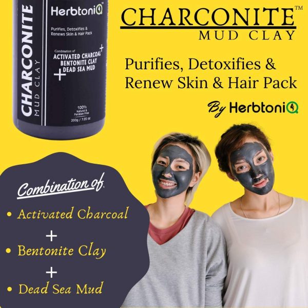 • Have you ever used HerbtoniQ Charconite Mud Clay on your skin & hair ? If not… You are missing out on something. HerbtoniQ Charconite Mud Clay is the combination of Activated Charcoal + Bentonite Clay + Dead Sea Mud. Charconite Mud Clay is a powerful chelating formula that absorbs toxins from your skin & hair. This is the Superman of all formulas that can pull bacteria, toxins, and pollutants out of the skin & hair.
