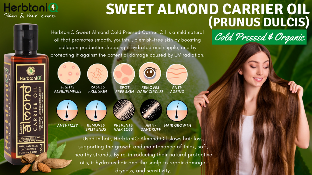 HerbtoniQ Organic Sweet Almond Cold Pressed Carrier Oil For Face-Skin Care & Hair Oil  (100 ml)