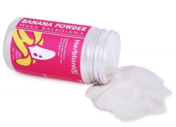 - HerbtoniQ Banana Powder is rich in Vitamin E, Vitamin A and B, Vitamin C and Beta-carotene. These ingredients are no less than a widespread beauty treatment for your skin.