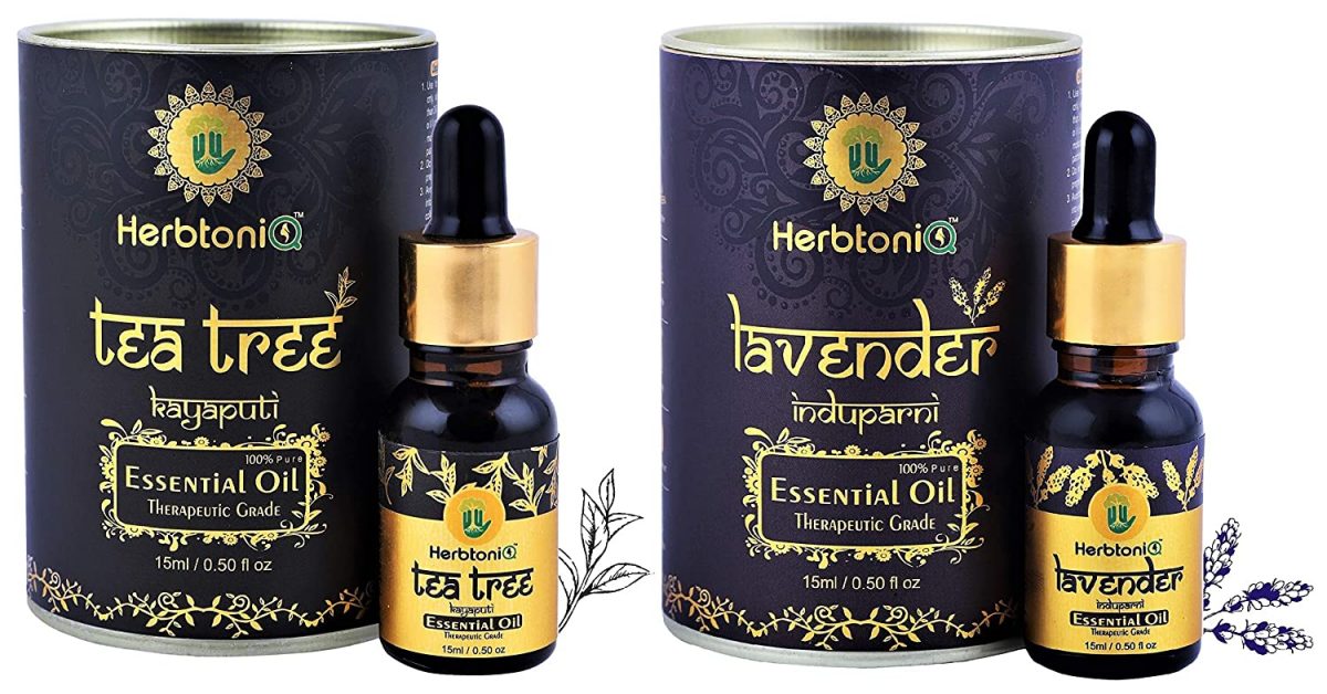 HerbtoniQ Tea Tree And Lavender Essential Oil Therapeutic Grade For Skin Hair And Acne Care (15ml x2)