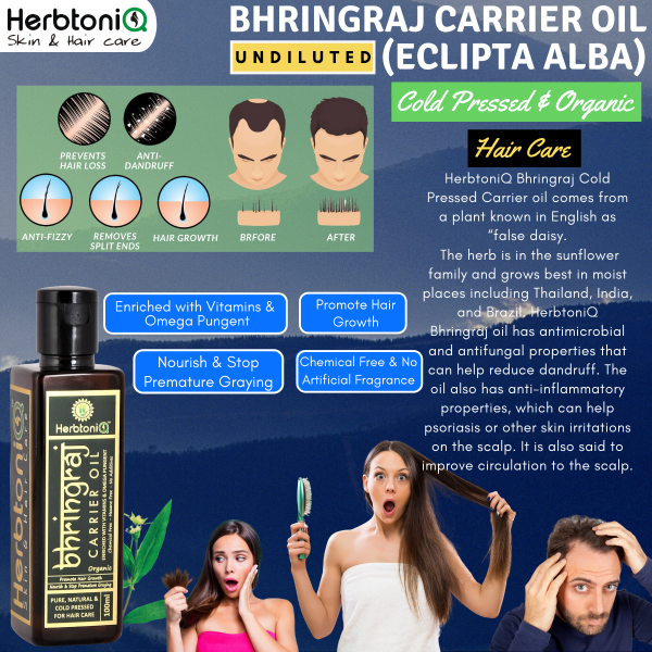 HerbtoniQ Organic Bhringraj Cold Pressed Carrier Oil for Intensive Hair Care Hair Oil (100ml, 3.38 fl oz)